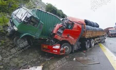据货车驾驶员文先生介绍,昨天清晨5点,他从瑞安运了6吨发动机配件去台州。事发于早上7时许,文先生说:“追尾后,重型货车没有停车,又撞着我驾驶的货车往前冲了30多米,把我的车子顶上2米多高的护坡后,两车才停下来。”文先生说,从车窗往后看了,追尾的重型货车半个车头没了。随后文先生和同事姚先生从副驾驶室车窗脱险。